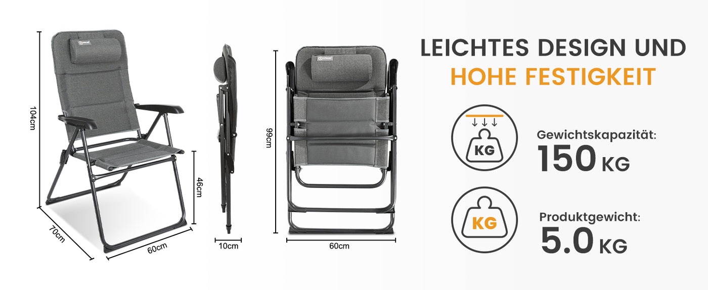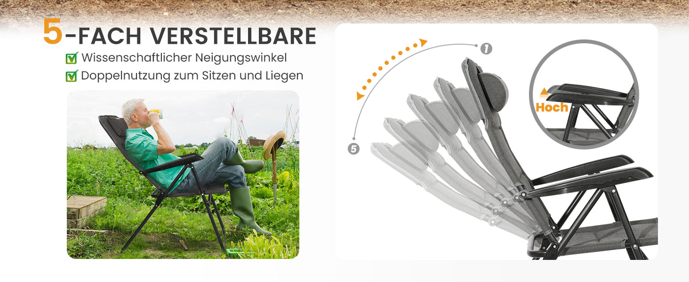 Homecall Camping Folding Chair with Padding and Adjustable Backrest - (Gray) - UV++ olefin fabric is backordered and will ship as soon as it is back in stock.