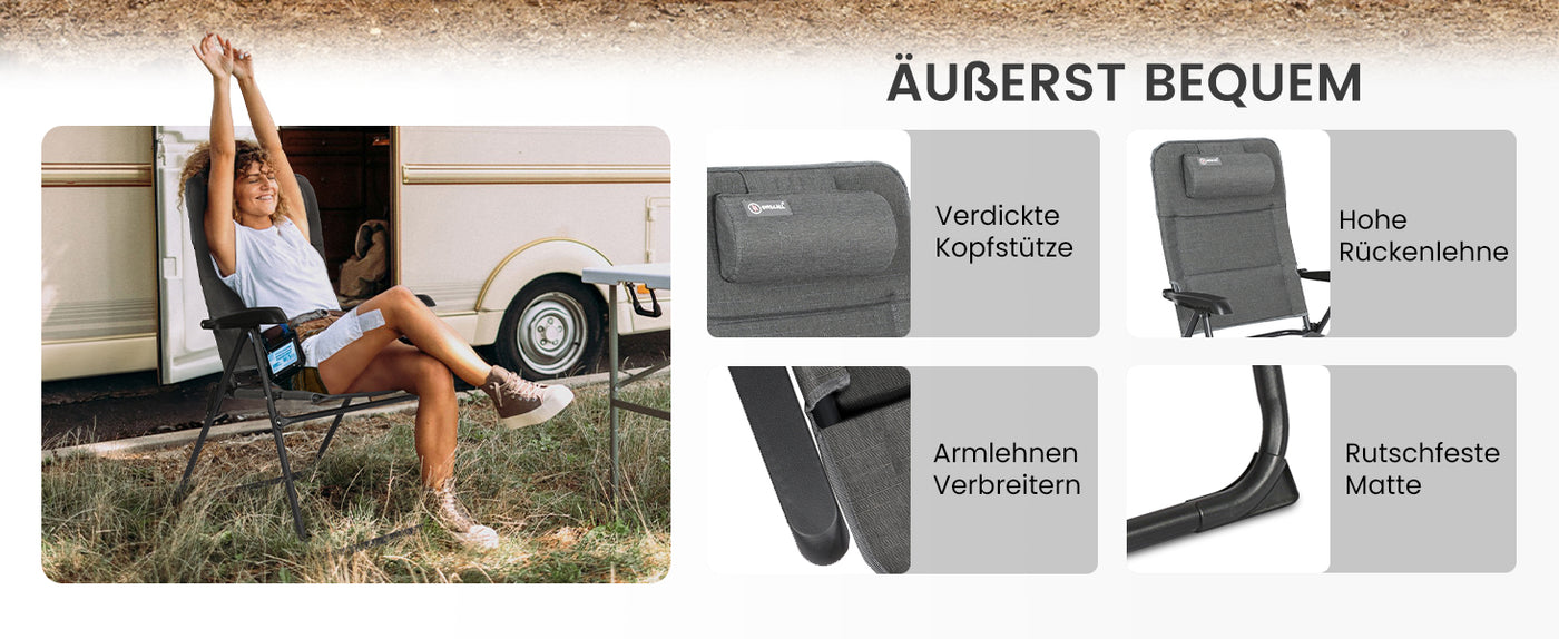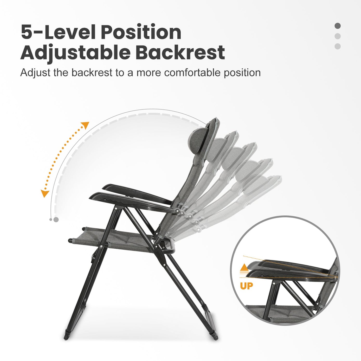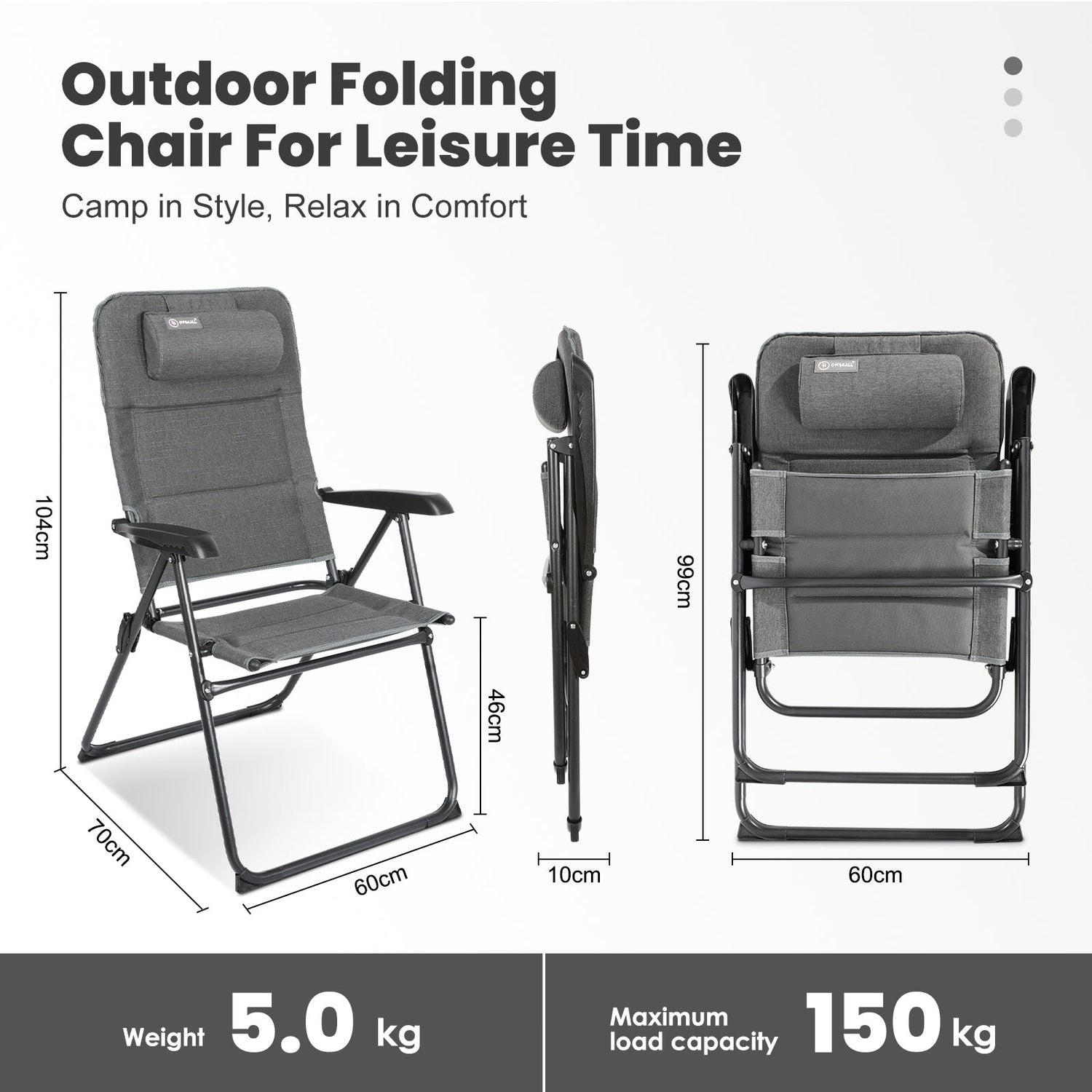 Homecall Camping Folding Chair with Padding and Adjustable Backrest - (Gray)