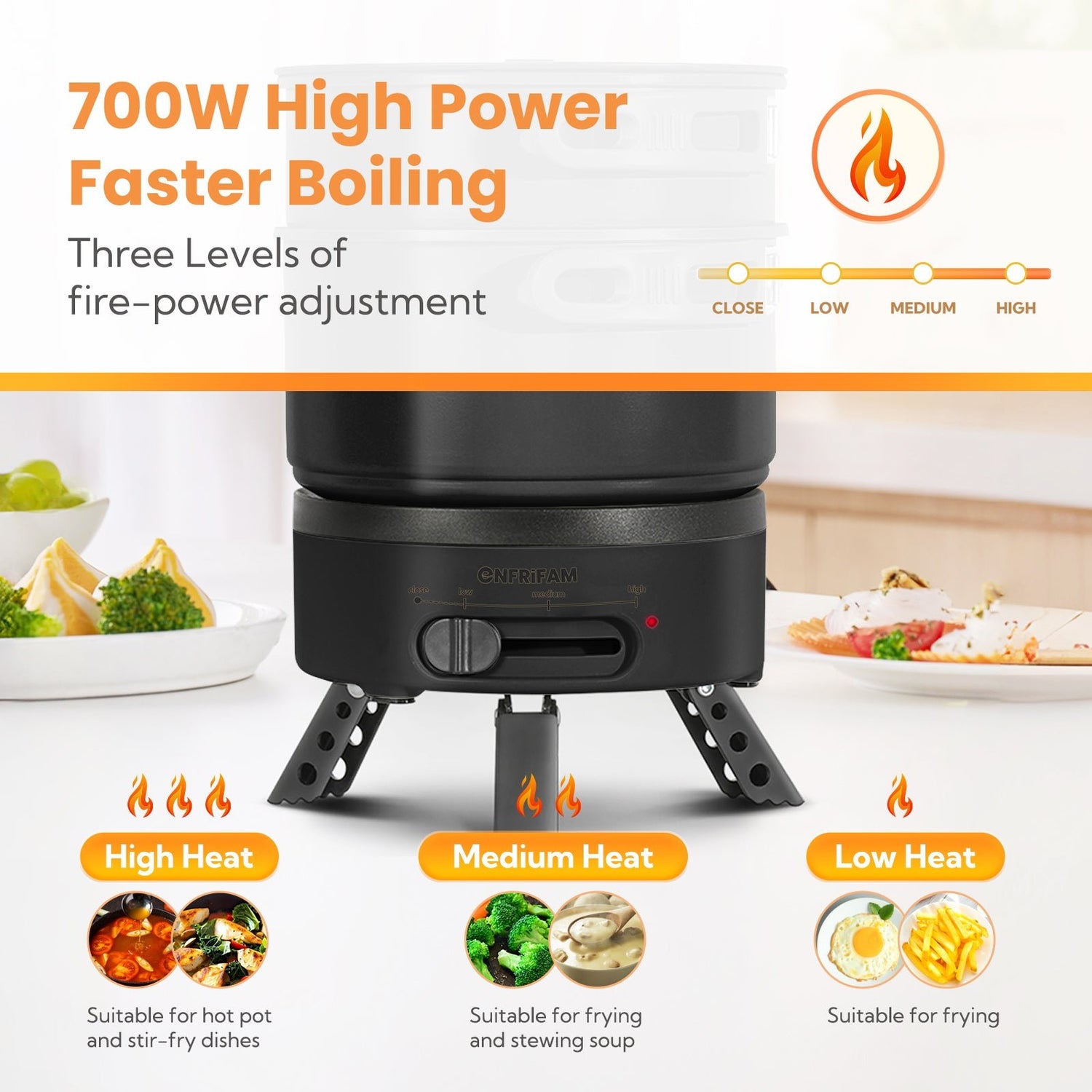 - The 700 W powerful electric cooking pot with double safety protection: overheat protection and dry burning protection makes it suitable for students and beginners