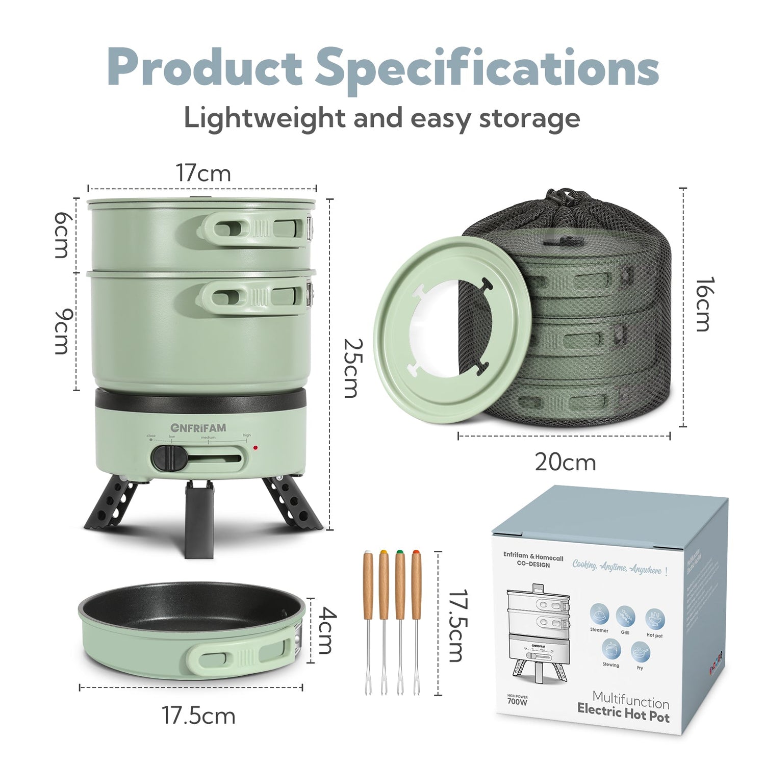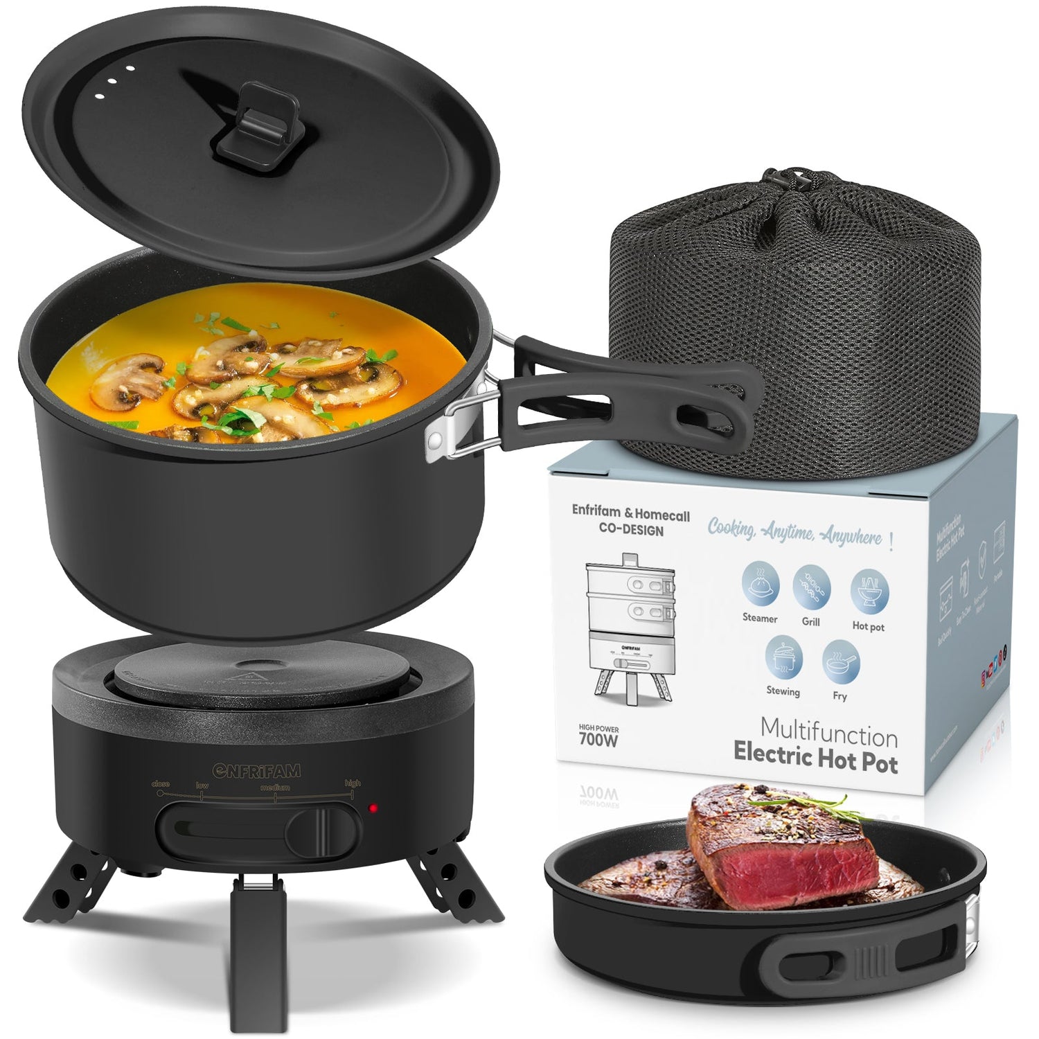 ENFRIFAM Electric hot pot, multi-cooker, electric pans, camping stove 700W, fondue set, ideal for offices, dormitories, hotels, travel, caravans
