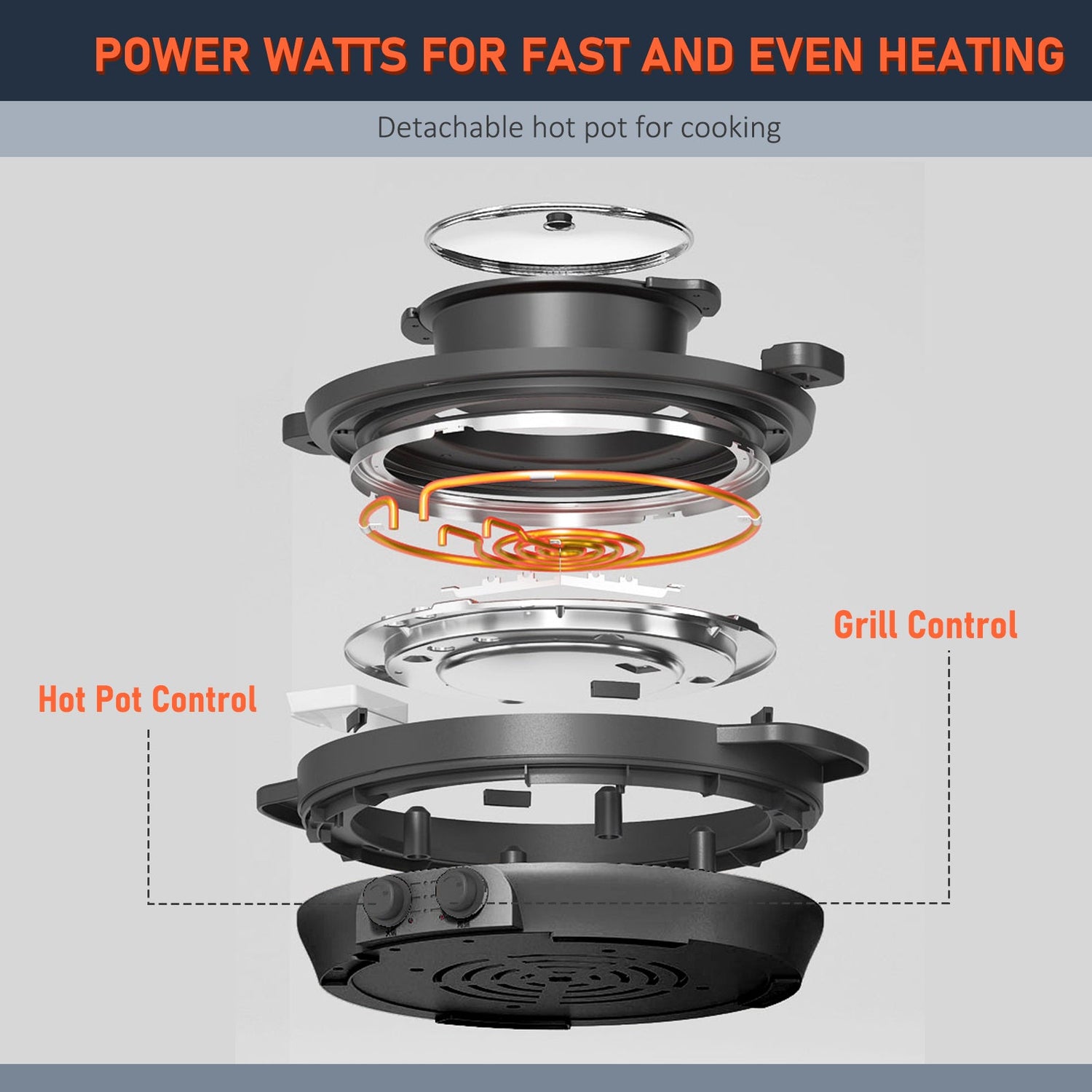 Fast Heating: Heat cycle heating ring with 2200W double tube, 220-240V voltage and high thermal efficiency, the pot can heat up in seconds and evenly, saving you a lot of time.
